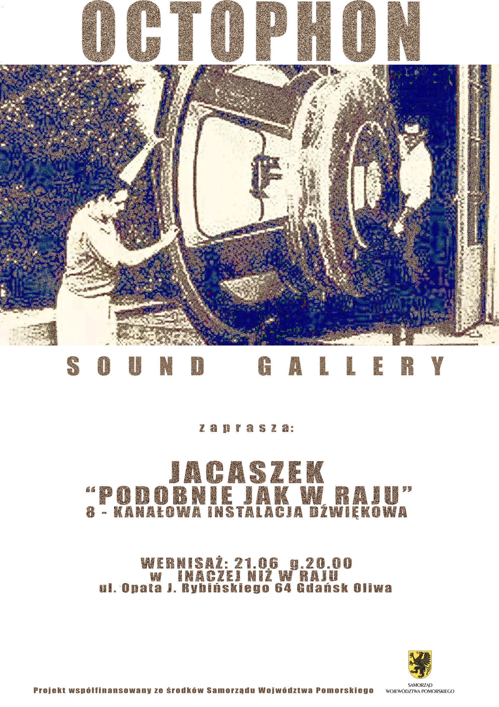 Galerię stanowi 8 wysokiej jakości głośników studyjnych sprzężonych z ośmiokanałowym interfejsem audio. System pozwala na odtwarzanie prac audio w systemie dookólnym (oktagonalnym), umożliwiającym immersyjne obcowanie z wysokiej jakości dźwiękiem. W OCTOPHONIE prezentowane są instalacje dźwiękowe Jacaszka a także prace zaproszonych artystów – wielokanałowe utwory dźwiękowe oraz towarzyszące im obiekty wizualne. Inaczej Niż w Raju’ jest przestrzenią tymczasową, ponieważ OCTOPHON jest galerią podróżującą, wchodzącą w relacje z unikalną specyfiką wielorakich przestrzeni i miejsc. Facebook